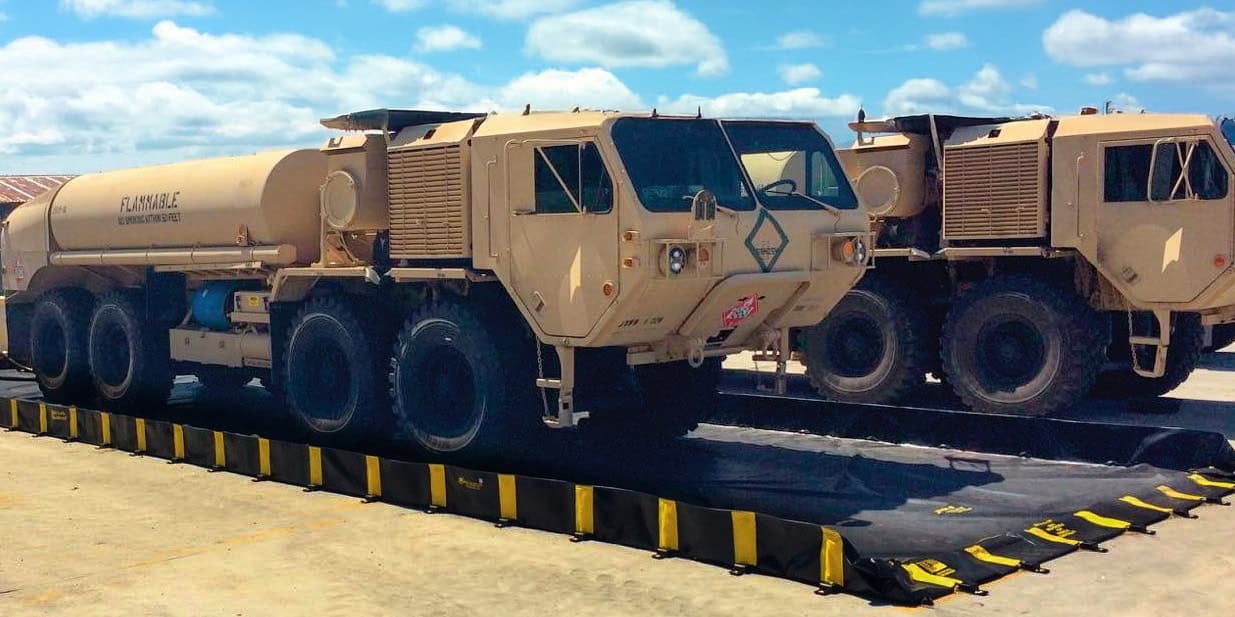 - Durable fabrics allow vehicles and machinery to be driven in and out of containment berm repeatedly